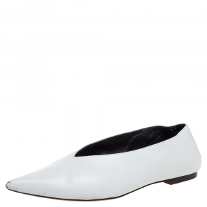 Celine White Leather V-Neck Ballet Flats Size 38.5