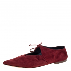 Céline Burgundy Suede V Lace Up Flats Size 41