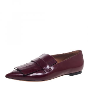 Celine Burgundy Leather Pointed Toe Masculina Fringe Flats Size 36
