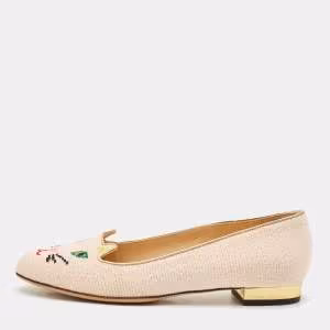 Charlotte Olympia Beige Canvas Smoking Slippers Size 37