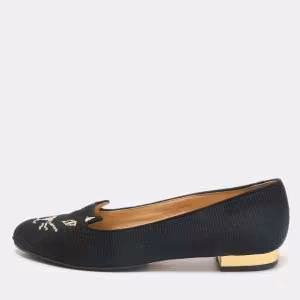Charlotte Olympia Black Canvas Kitty Espadrille Flats Size 38