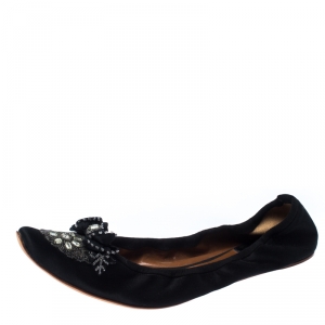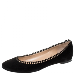 Chloe Black Suede Foster Lace-up Ballet Flats Size 36.5
