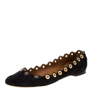 Chloe Black Perforated Leather Lauren Scalloped Ballet Flats Size 42