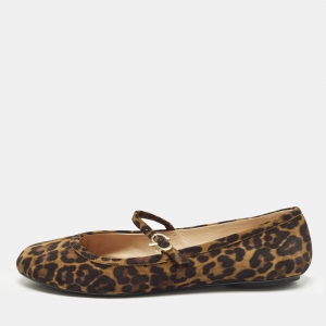 Gianvito Rossi Black/Brown PVC Animal Print Slingback Flats Size 38.5
