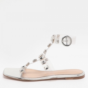 Gianvito Rossi Black PVC and Patent Leather Gemini Flat Slides Size 36