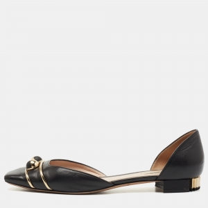 Giorgio Armani Black Leather Buckle Embellished Square Toe Ballet Flats Size 39