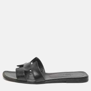 Hermes Black Leather Oran Flat Slides Size 40.5