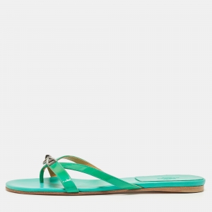 Hermes Green Patent Leather Liberty Ballet Flats Size 40