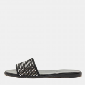 Jimmy Choo Black/Silver Glitter Jaida Smoking Slippers Size 37