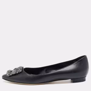Manolo Blahnik Black Satin Hangisi Ballet Flats Size 41
