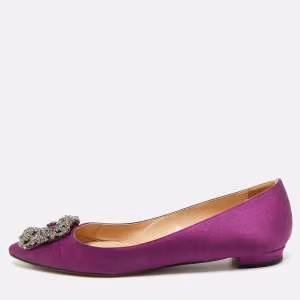 Manolo Blahnik Pink Satin Hangisi Crystal Embellished Ballet Flats Size 40.5
