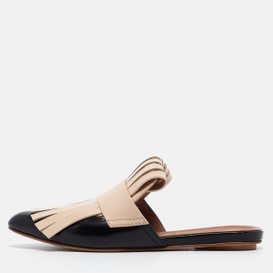 Marni Beige/Black Leather Fringe Flat Mules Size 37