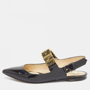 Moschino Black Leather and Elastic Logo Strap Slingback Flats Size 36