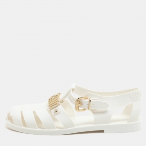 Moschino White Jelly Logo Flats Size 38