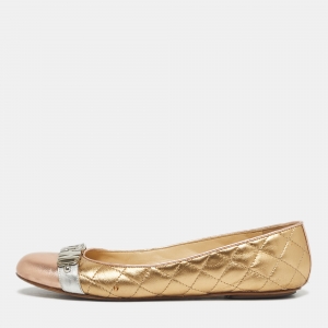 Moschino Gold Leather Logo Embellished Ballet Flats Size 38