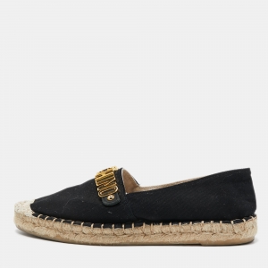 Moschino Black Canvas Logo Espadrille Flats Size 37