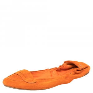 Ralph Lauren Collection Orange Suede Penny Scrunch Ballet Flats Size 39.5