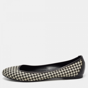 Ralph Lauren Collection Black/White Leather and Canvas Ballet Flats Size 37.5