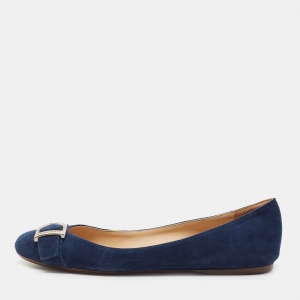 Ralph Lauren Collection Navy Blue Suede D Buckle Ballet Flats Size 36
