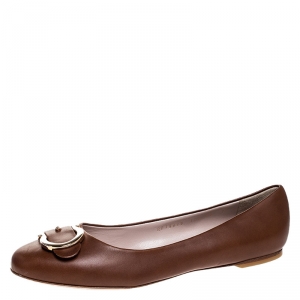 Salvatore Ferragamo Brown Leather Vara Bow Flats Size 40.5