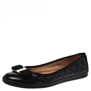 Salvatore Ferragamo Black Leather Vara Bow Ballet Flats Size 37