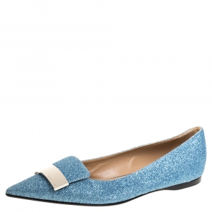 Sergio Rossi Light Blue Glitter Metal Detail Ballet Flats Size 39.5