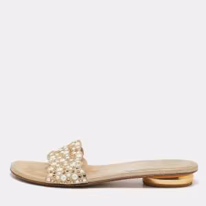 Stuart Weitzman Metallic Gold Glitter Smoking Slippers Size 37.5