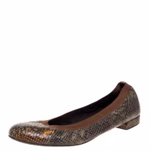 Stuart Weitzman Grey/Beige Leather and Snakeskin Embossed Leather Chain Detail Ballet Flats Size 38.5
