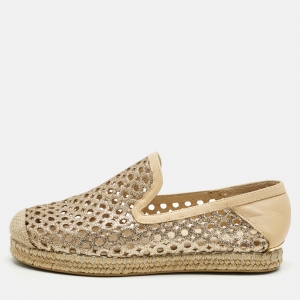 Stuart Weitzman Off-white Lace And Leather Trim Meshuga Espadrille Flats Size 35