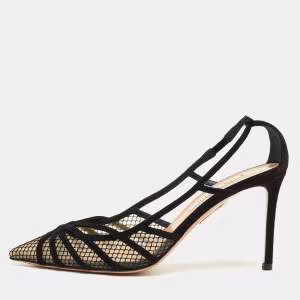 Aquazzura Black Mesh And Suede Bond Street Ankle Chain Pointed Toe Pumps Size 38