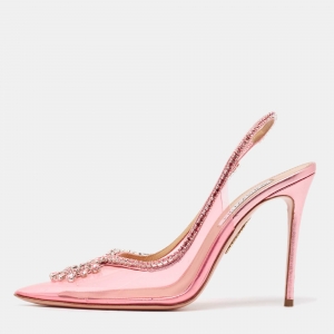 Aquazzura Transparent PVC Crystal Embellished Slingback Pumps Size 38.5
