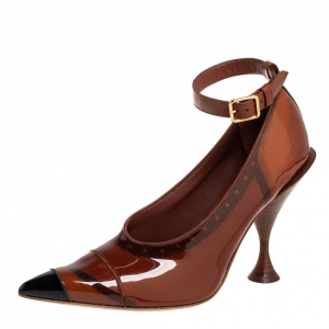 Burberry Brown Patent Leather Dill Kitten Heel Ankle Cuff Pumps Size 38