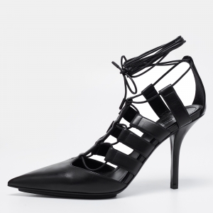 Burberry Grey Leather Chain Detail Ankle Wrap Pointed-Toe Pumps Size 39.5