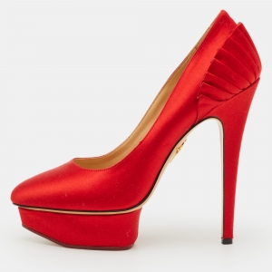 Charlotte Olympia Turquoise/Red Satin Josephine Platform Pumps Size 38