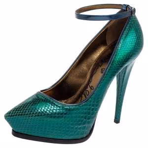 Lanvin Green Python Embossed Leather Wedge Pumps Size 37