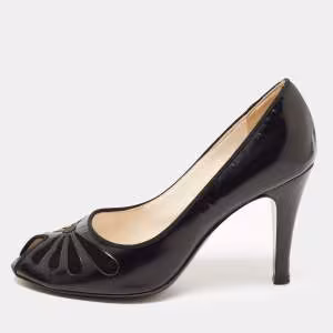 Marc Jacobs Black Patent Leather Peep Toe Reverse Heel Pumps Size 36