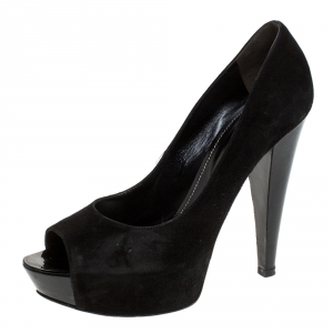 Sergio Rossi Black Patent and Leather Platform Pumps Size 36.5