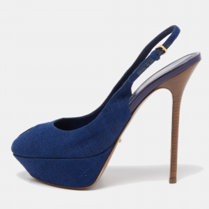 Sergio Rossi Blue Eel Leather Peep Toe Pumps Size 37.5