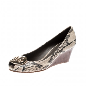 Tory Burch Beige/Black Animal Print Raffia and Fabric Jackie Wedges Pumps Size 37
