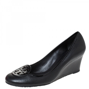 Tory Burch Black Leather Sally Wedge Pumps Size 38.5