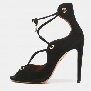 Aquazzura Black Suede Wild Thing Ankle Wrap Sandals Size 35