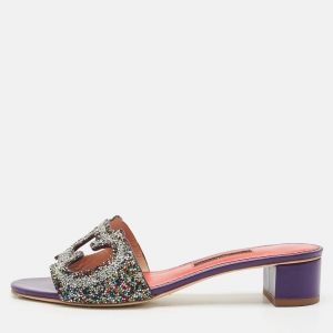 Carolina Herrera Silver Glitter Slides Sandals Size 41