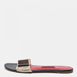 Carolina Herrera Metallic Gold and Silver Cord Leather Bow Slides Size 39