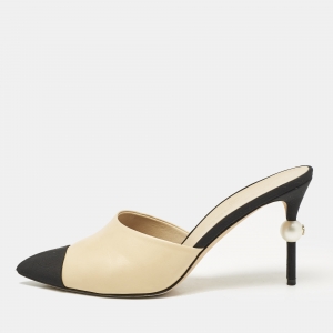 Chanel Black Leather Pearl Embellished Mules Size 41