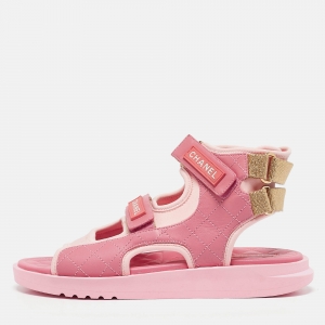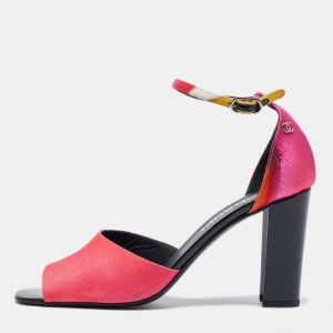 Chanel Multicolor Printed Fabric Ankle Strap Sandals Size 37