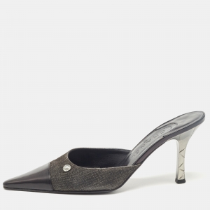 Chanel Black /Grey Patent and Leather CC Faux Pearl Embellished Mules Size 39.5