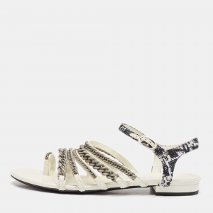 Chanel Black/Gold Leather CC Chain Detail Strappy Sandals Size 37