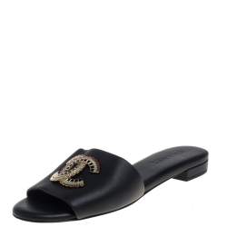 Chanel Black Leather CC Chain Link Strap Sandals Size 39.5