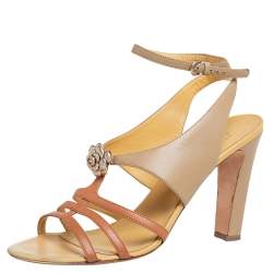 Chanel Beige Quilted Leather CC Block Heel Ankle Strap Sandals Size 38