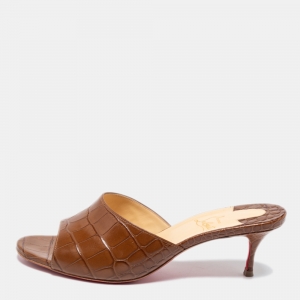 Christian Louboutin Burgundy Lizard Embossed Leather Me Dolly Slide Sandals Size 38.5